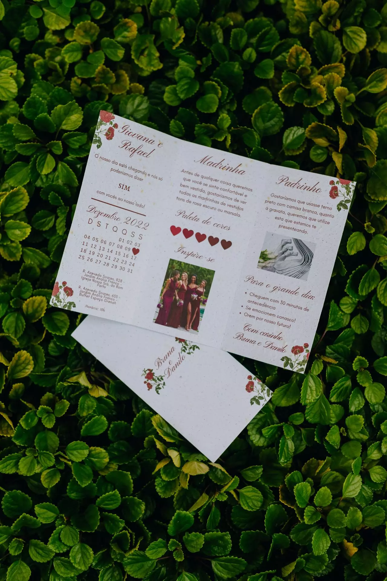 O melhor papel para convite de casamento é o papel semente que, ao invés de virar lixo após o uso, pode ser plantado e dar