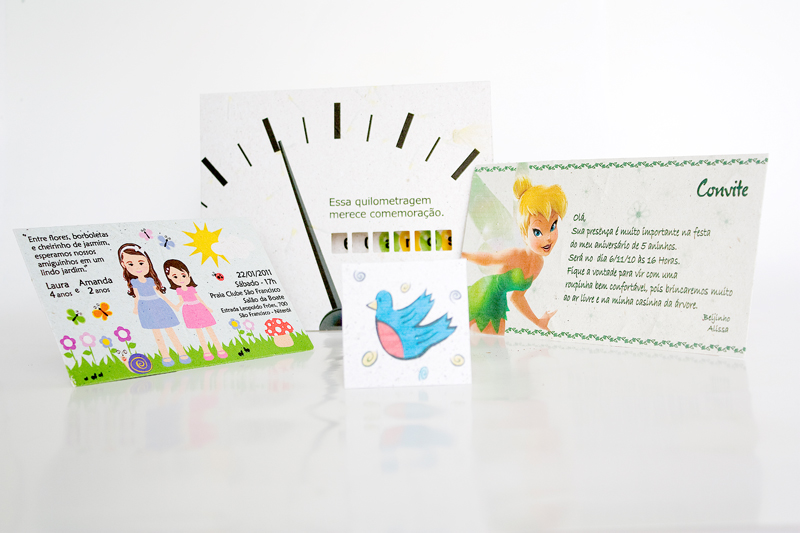 Leques, máscaras, crachás, convites e folders em papel semente são perfeitos para a festa. Todos podem ser personalizados com sua marca e se transformam em plantas após o uso. Leia mais.