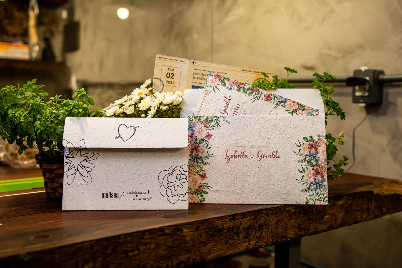 O melhor papel para convite de casamento é o papel semente que, ao invés de virar lixo após o uso, pode ser plantado e dar